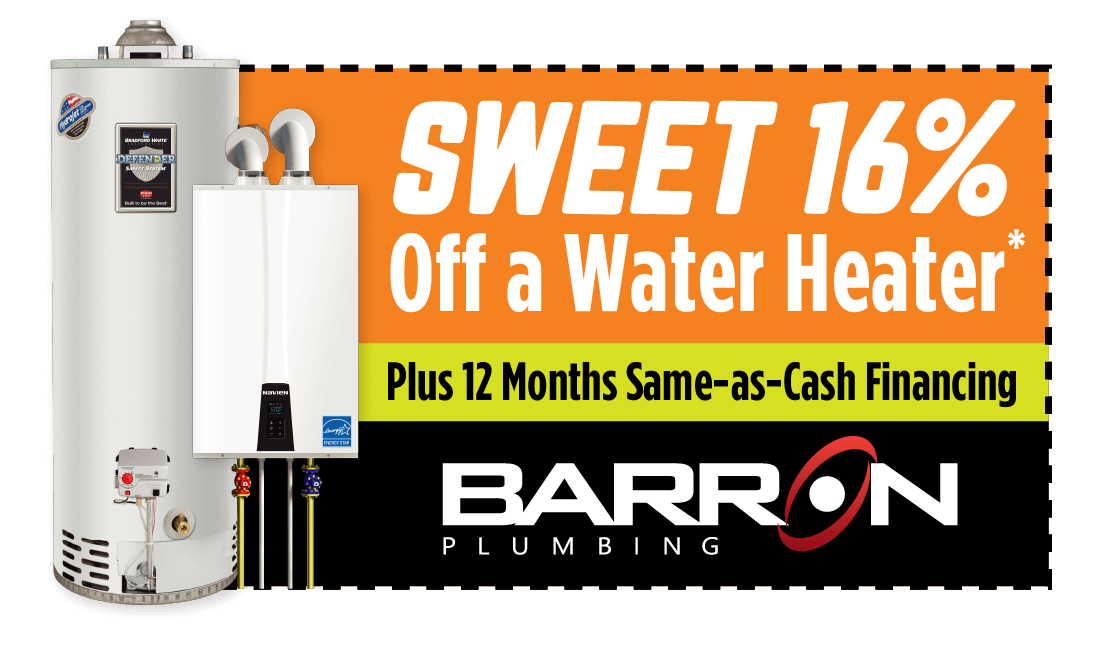 Double Dribble: Get a SWEET 16% OFF a tank or tankless water heater—plus enjoy 12-months same-as-cash financing.*